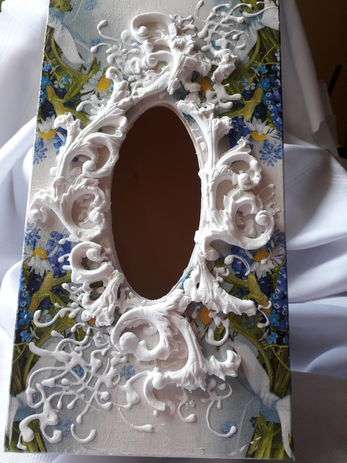 Niedawno powstał obraz z grającym aniołem. Obraz wykonany preparatami Powertex- kulki, materiały, Powertex. tekturki.